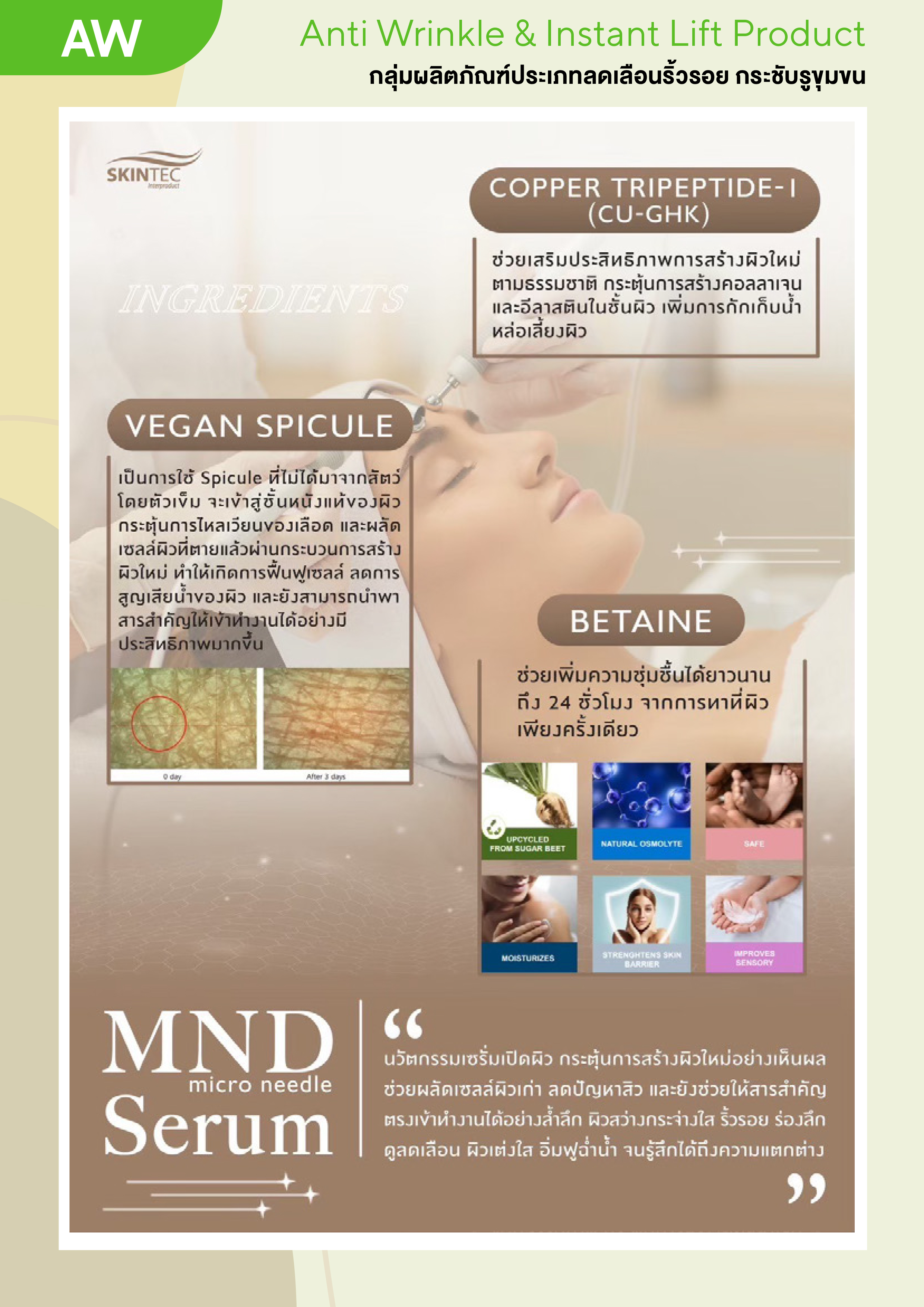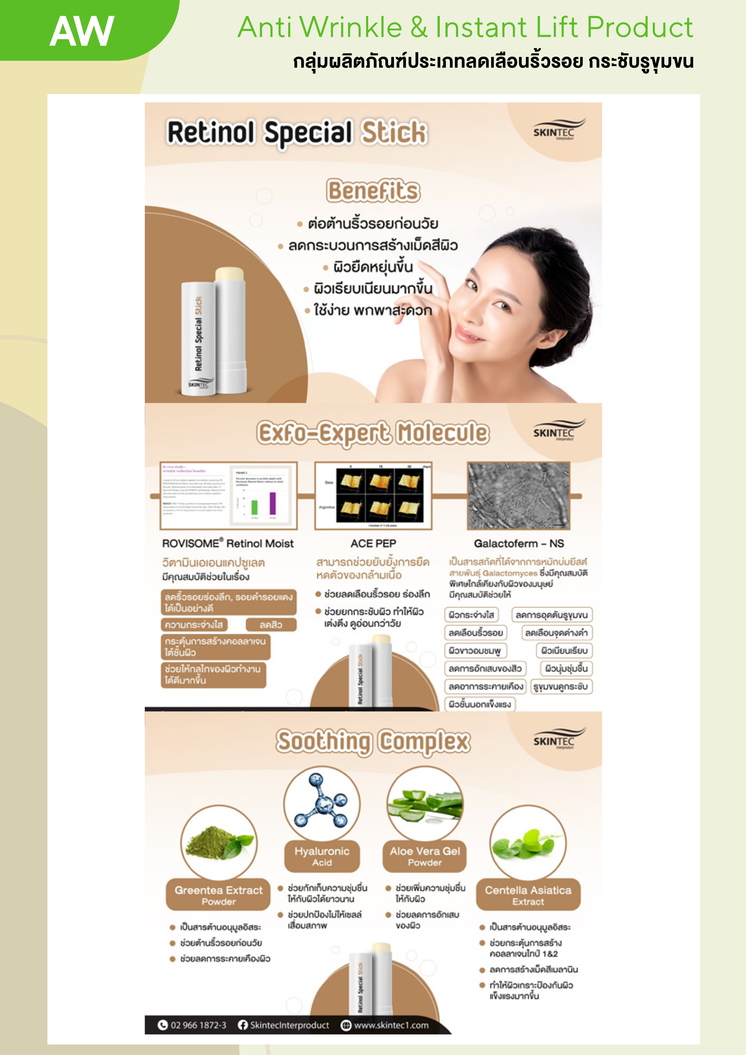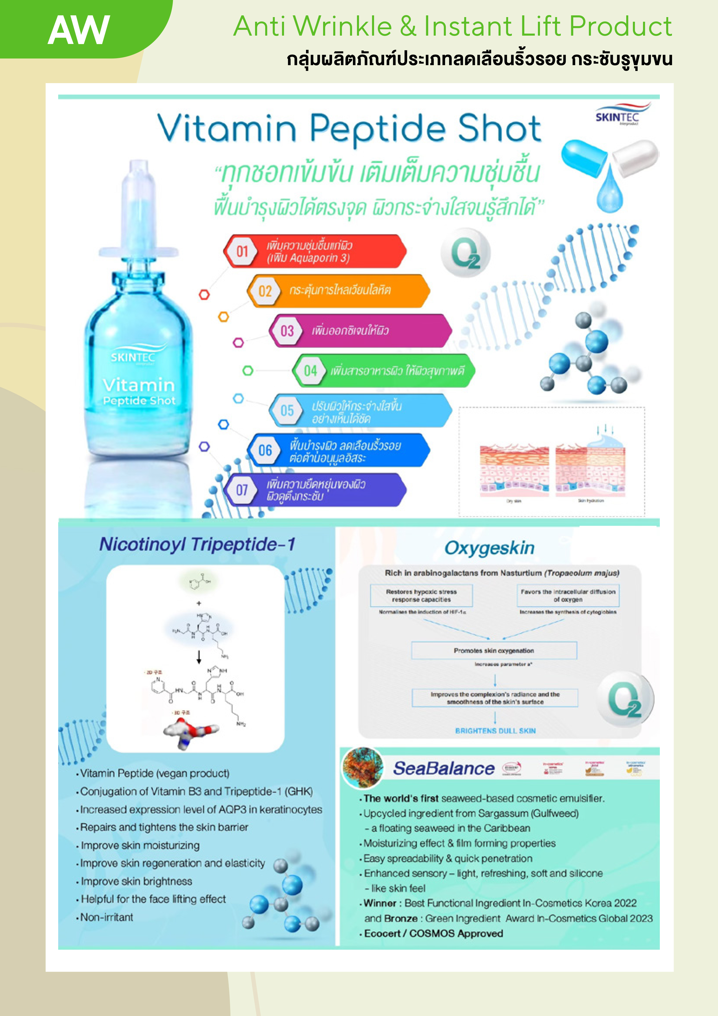 นวัฒกรรมใหม่ของเซรั่มบำรุงผิว ช่วยปรับสภาพผิวให้แลดูกระจ่างใส ลดจุดด่างดำ ช่วยลดสาเหตุของการเกิดริ้วรอยทั้งจากวัยและการแสดงอารมณ์ ให้ริ้วรอยลึกแลดูตื้นขึ้น ผิวนุ่ม เรียบเนียน ตึงกระชับ แลดู มีสุขภาพดี